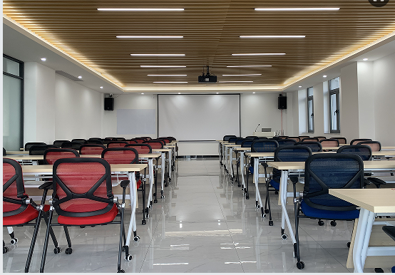 再看這間功能完備的培訓(xùn)室,空間寬敞明亮,可同時(shí)容納 50-80 人開展培訓(xùn)會(huì)議等活動(dòng)。